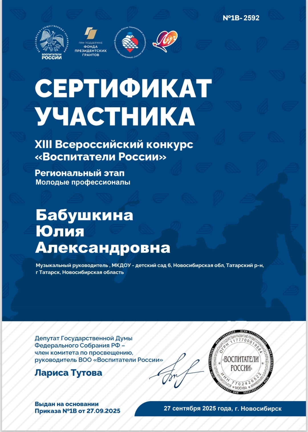 Диплом 1 степени за участие в конкурсе "Пою тебя,моя РОССИЯ"