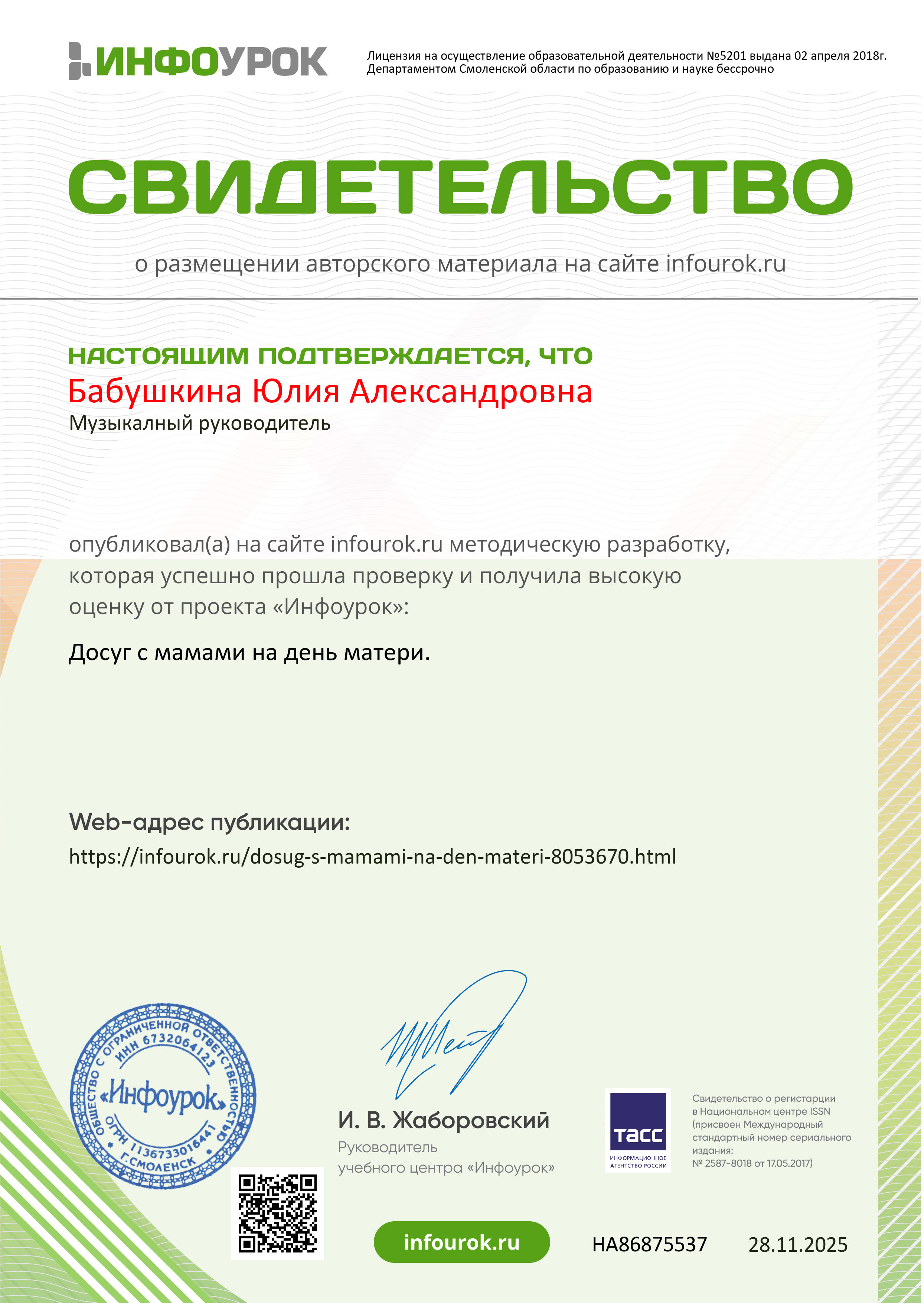 Бабушкина Юлия Александровна
